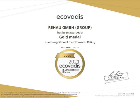 Cu un scor total de 71 din 100 de puncte posibile, Grupul REHAU a obtinut medalia de aur pentru prima data si se afla astfel printre primele 5% din toate companiile participante si printre primele 1% din companiile din industria de prelucrare a materialelor plastice.