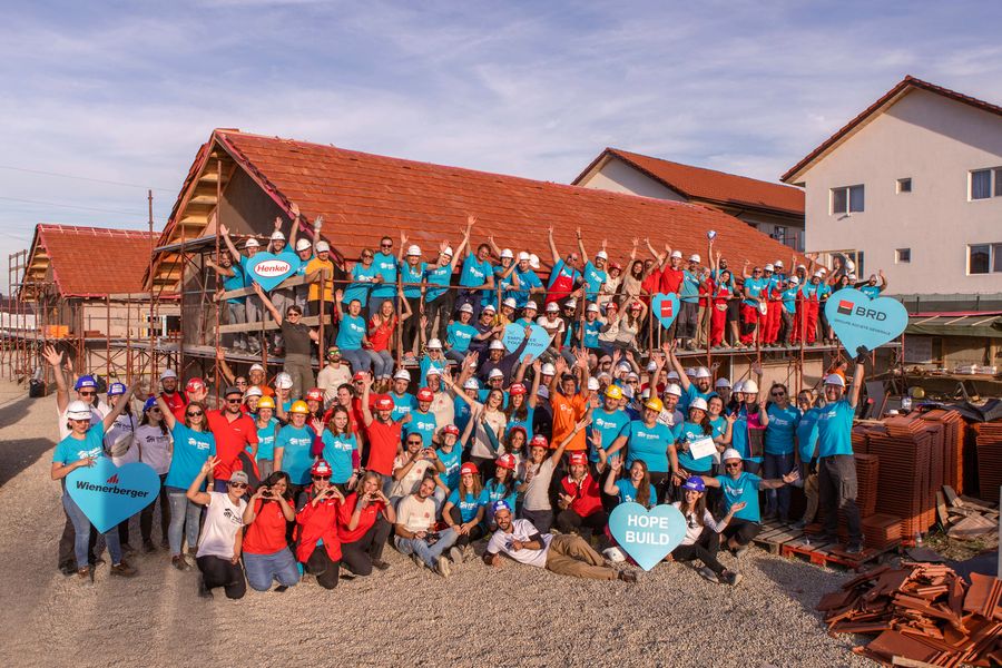 Hope Build este un proiect de construire accelerata in care se ridica mai multe locuinte in doar 5 zile, de luni pana vineri, exclusiv cu ajutorul voluntarilor.