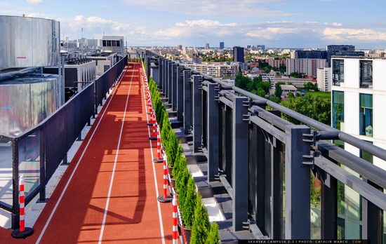 Cladirea a obtinut doua optimizari pentru design-ul exterior al spatiului, care promoveaza si incurajeaza activitatea fizica in aer liber, dar si pentru spatiile dedicate care permit o varietate de activitati fizice atat in interior cat si in exterior, precum mersul cu bicileta, plimbarile sau alergatul. Una dintre facilitatile inovatoare care incurajeaza rutina de a face miscare chiar si la birou, o reprezinta pista de alergare de pe acoperisul cladirii, prima de acest fel din tara noastra. In plus, stratul final al pistei de alergare este atestat de catre Asociatia Internationala a Federatiilor de Atletism.