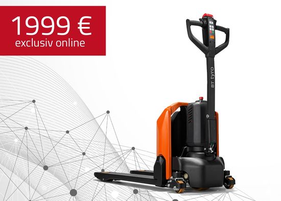 BT tyro LHE130 este un nou model de transpaleta Toyota, proiectata pentru utilizatorii de transpalete manuale care au nevoie de un plus de productivitate. Poate transporta si ridica sarcini de pana la 1300kg. BT tyro este solutia perfecta atunci cand se doreste efort scazut pentru operator, iar acum vine cu un pret special pentru comenzile online: 1999 euro + TVA.